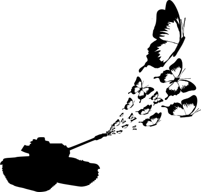 A tank firing butterflies.