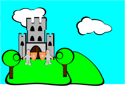a simple cartoon drawing of castle with a background.