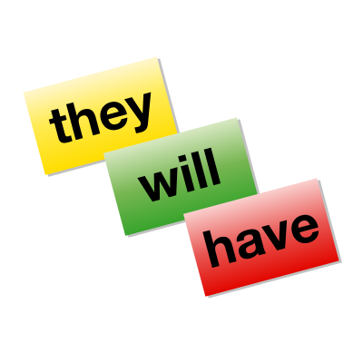 Colored word cards, reading "they", "will", and "have", in red, yellow, and green.