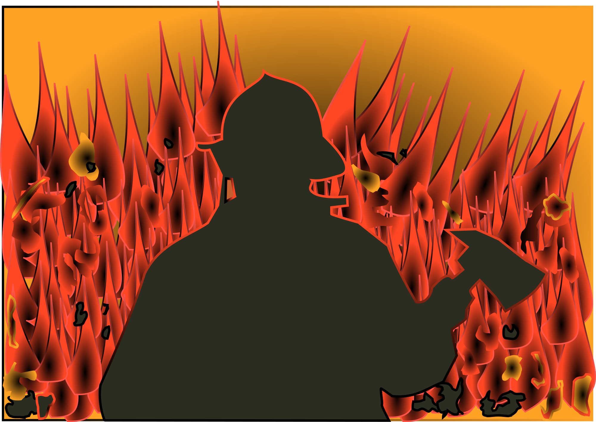 - fireman flame scene silhouette