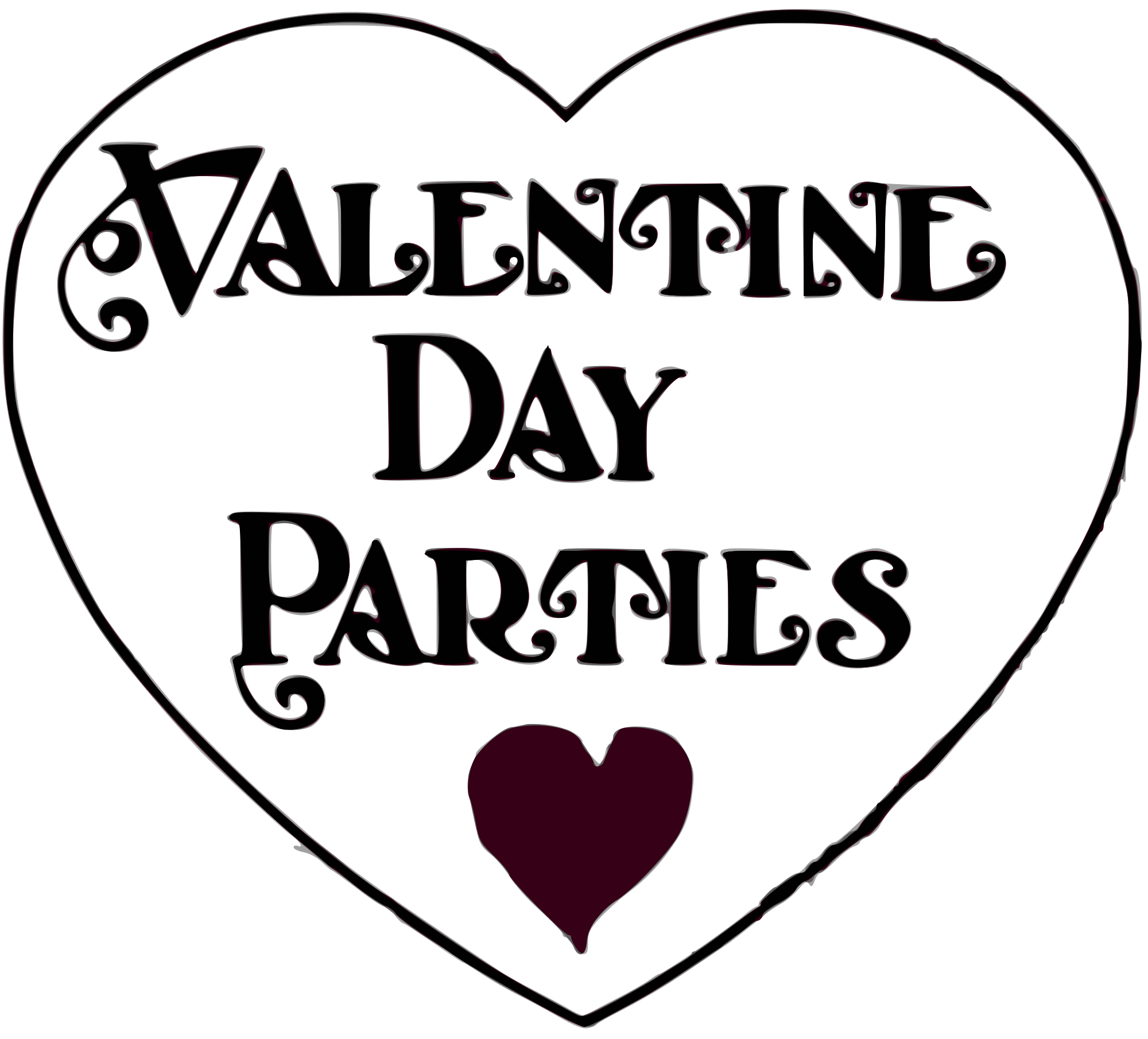 A heart with old fashion text that says "Valentines Day Parties" with an extra red heart for punch. Based on something found in a super old public domain newspaper.