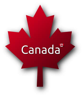 A Red Canadian Maple Leaf with the word Canada in the centre and a Canadian Flag. Drawn with Inkscape.