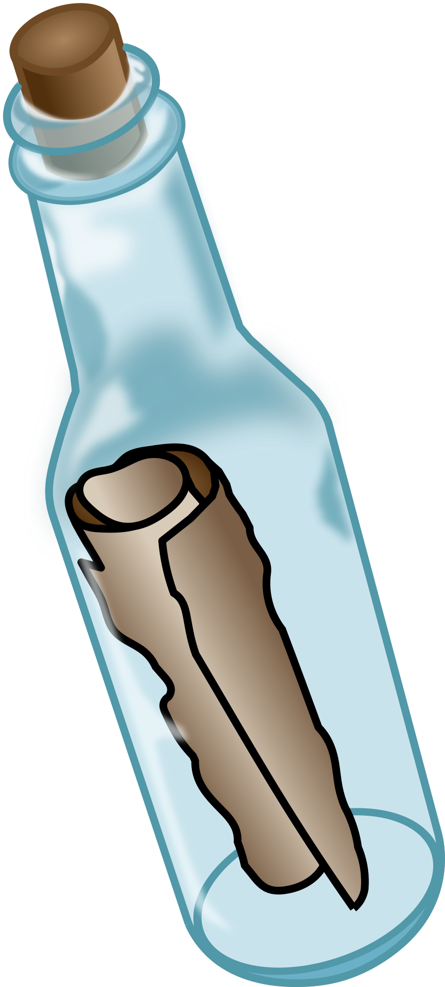 Message in a bottle with glassy transparencies