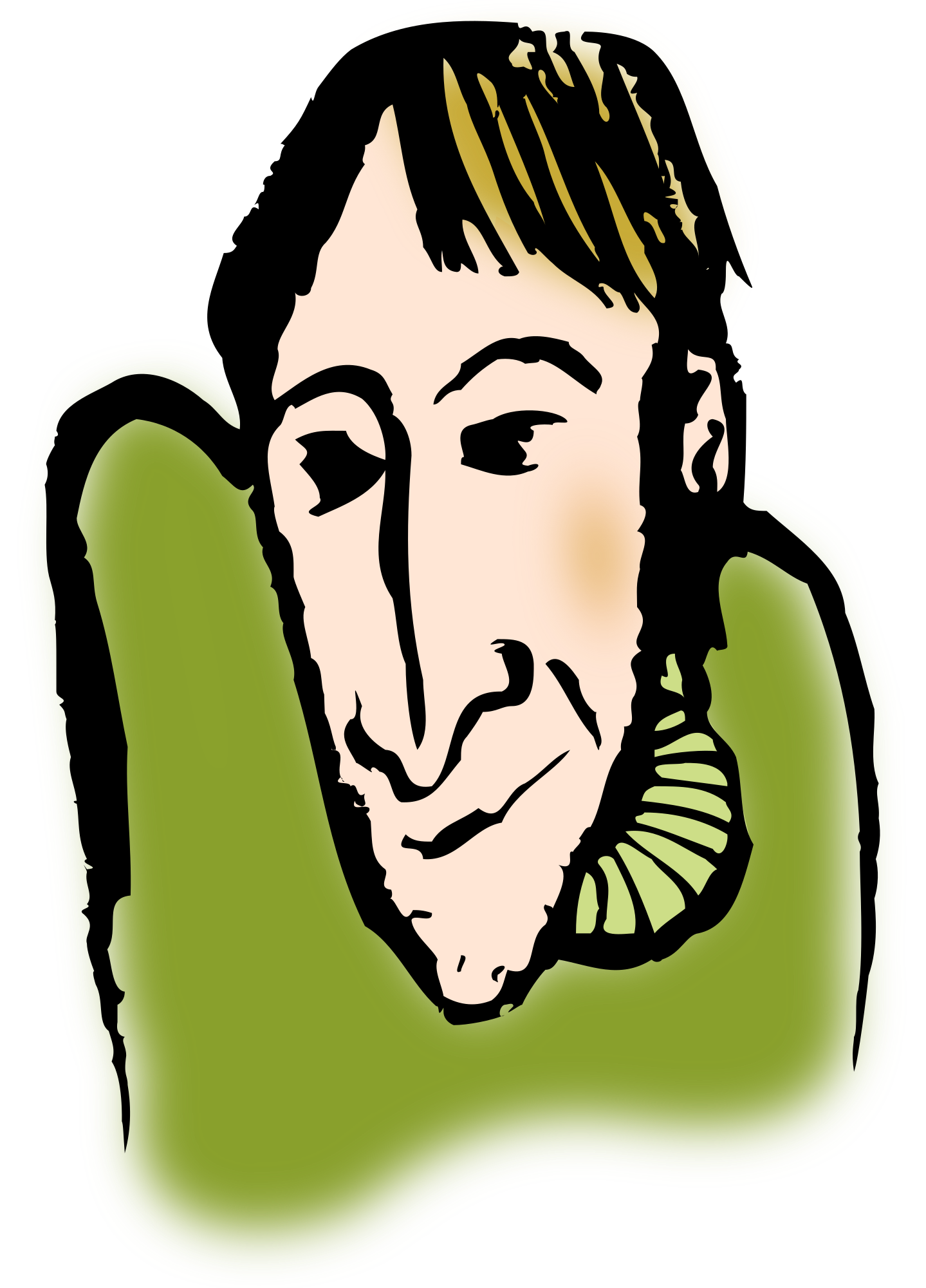 A man wearing a green shirt looks at us