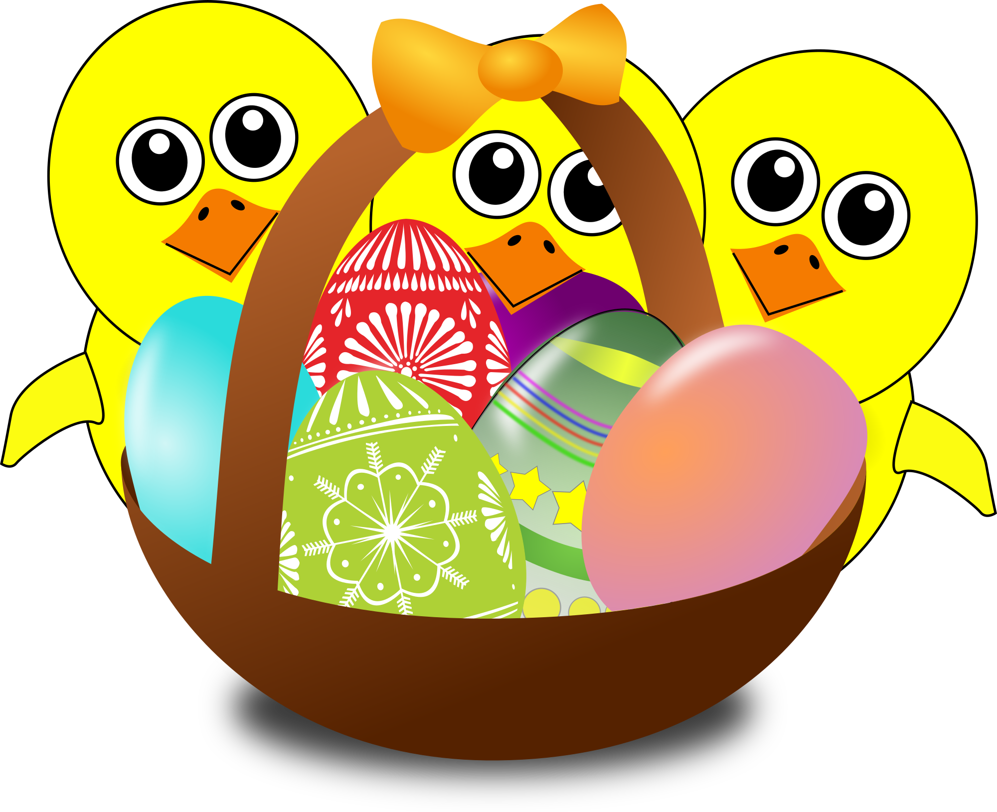 Funny Chicks Cartoon with Easter eggs in a basket - Drôle de poussins avec un panier d'oeufs de Pâques - Lustige Küken mit einem Korb voller Ostereier - Pulcini divertenti con un cesto di uova di Pasqua (partially remixed from "Martouf", "mystica", "shokunin" and "nicubunu" illustrations)