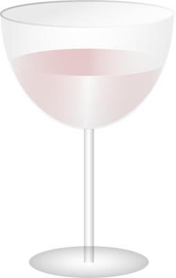 A glass of pink wine.