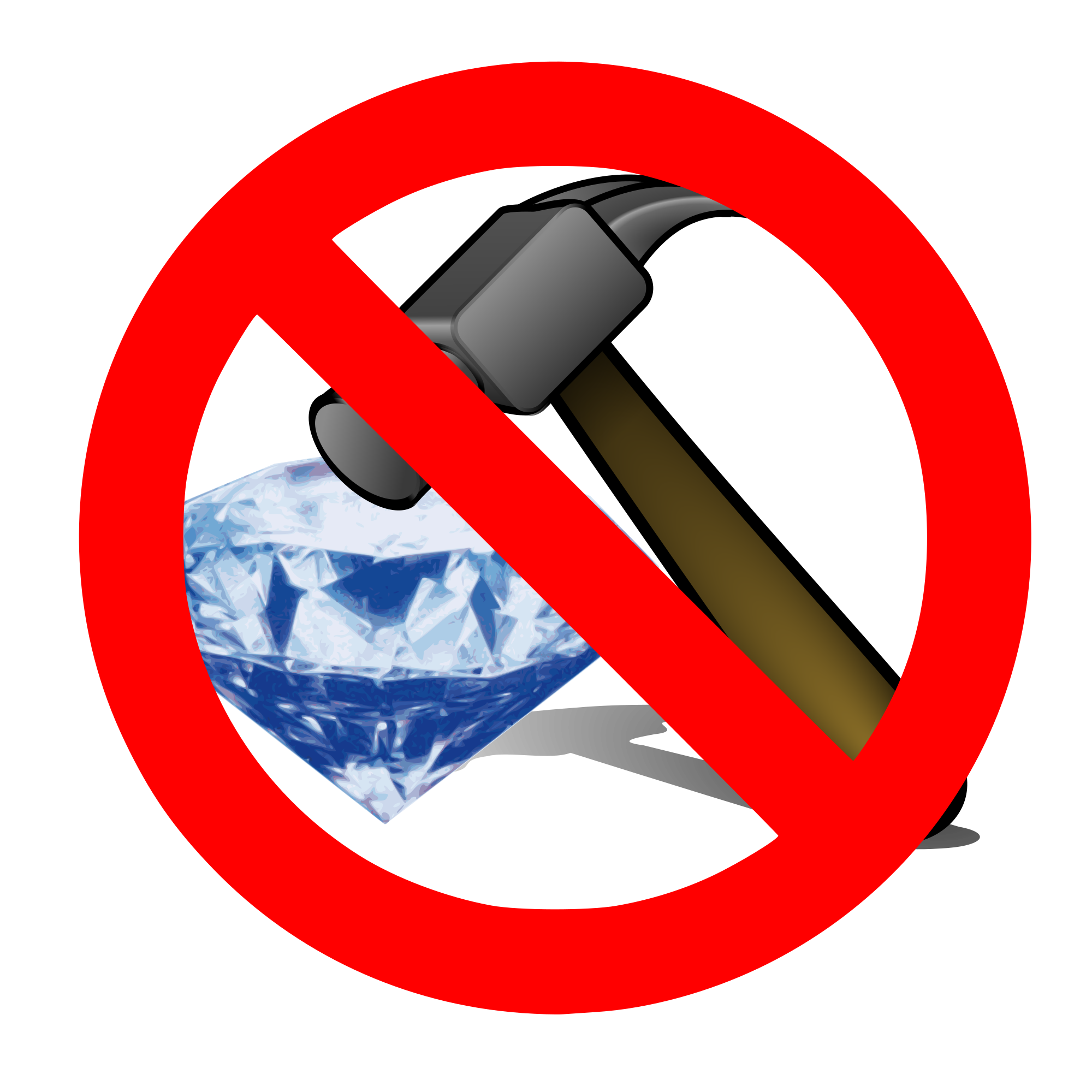 A hammer placed on top of the diamond overlaid with the "No" sign.