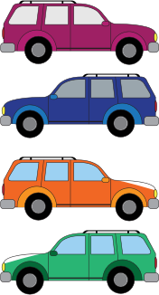 Four SUV trucks in bright colors