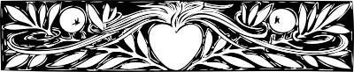 a decorative border of branches and fruit with a heart in the center from http://runeberg.org/ordochbild/
