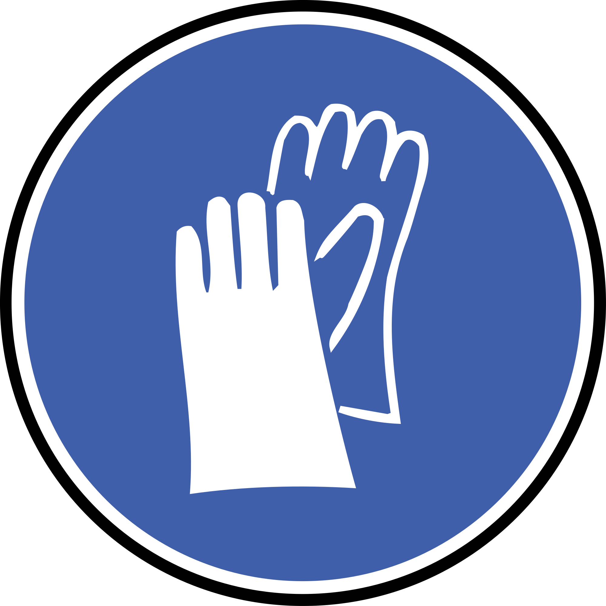 A round blue sign telling people to wear gloves to protect their hands.