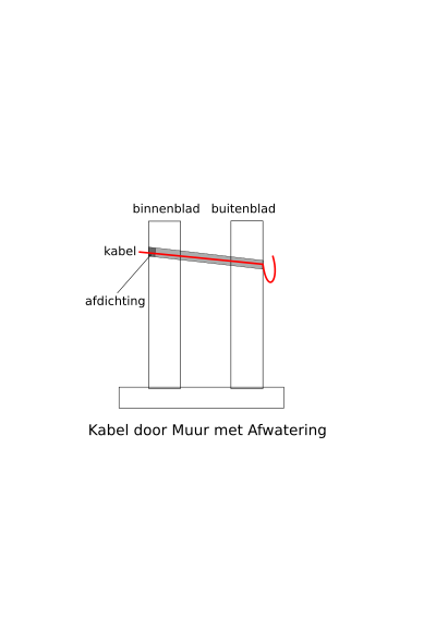 A diagram of a cable running through a wall.