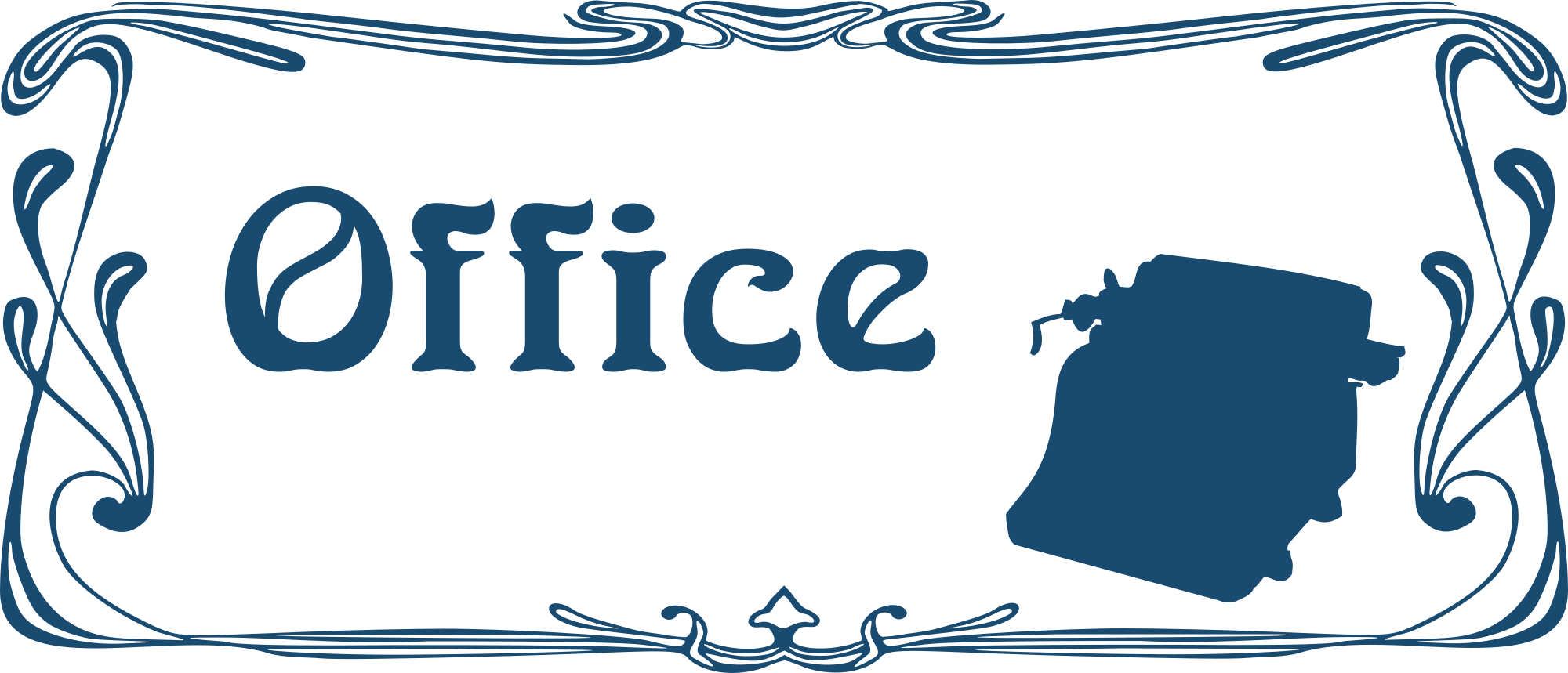 Door sign for your home office with the silhouette of an old typewriter in art nouveau style, part of a series.