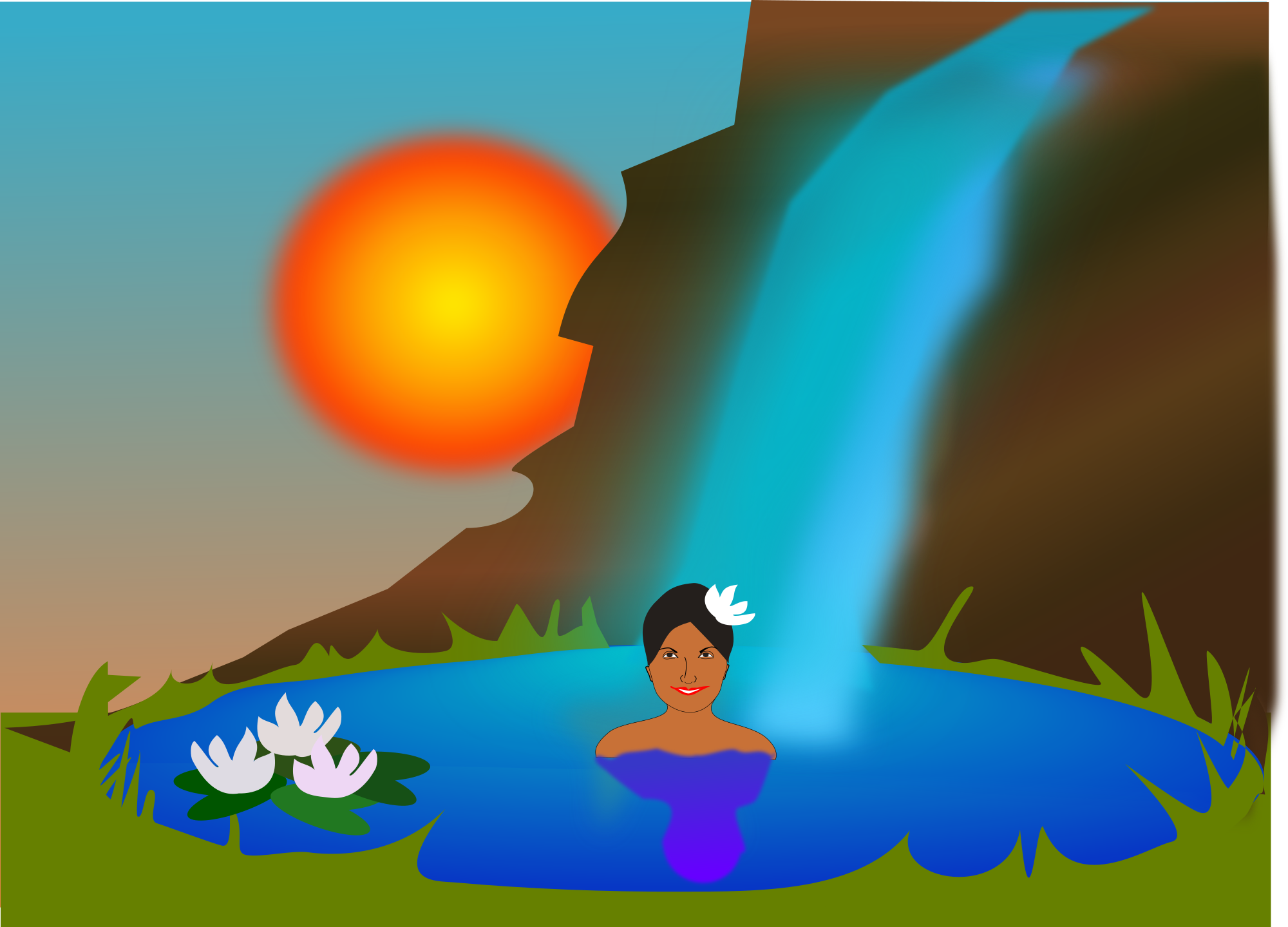 image: bathing in a waterfall