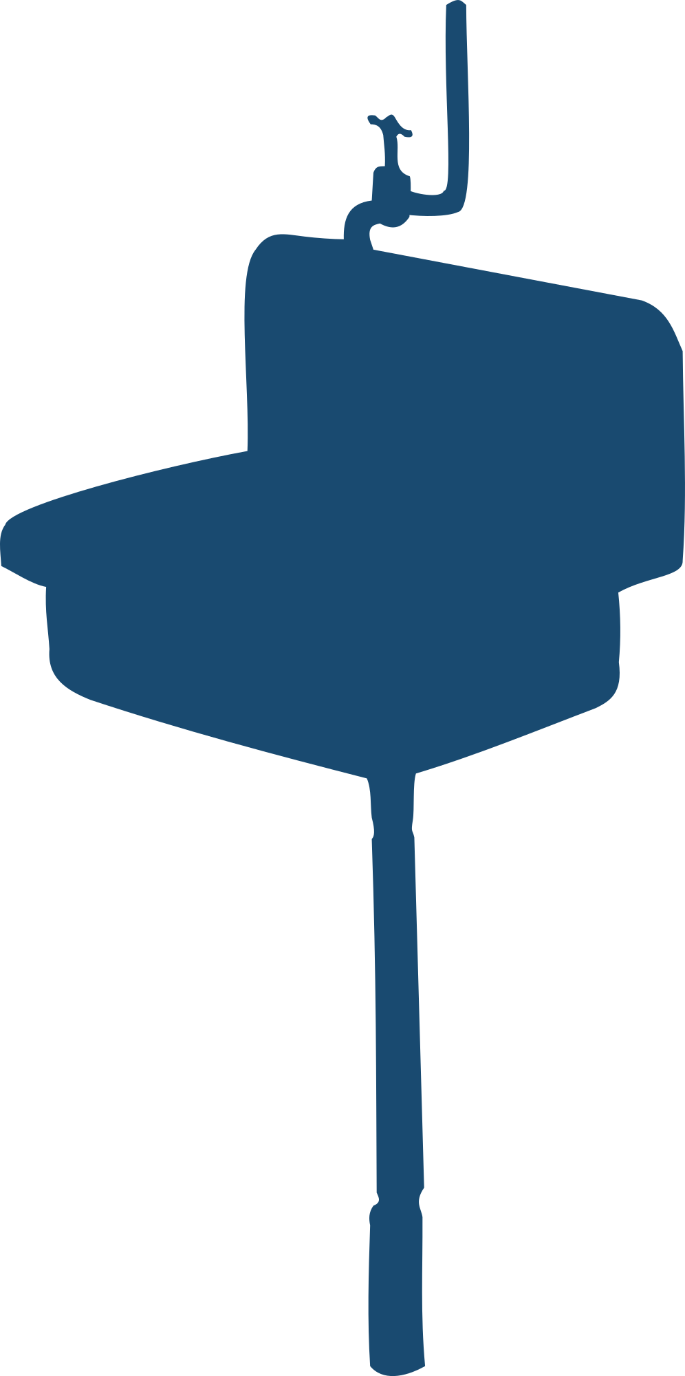Silhouette of a sink with faucet and sewer pipe.