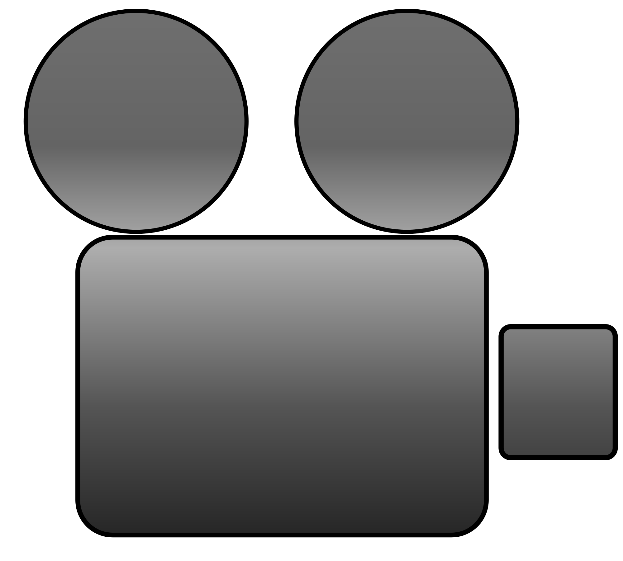 A minimalist video camera icon with two rectangles and two circles.