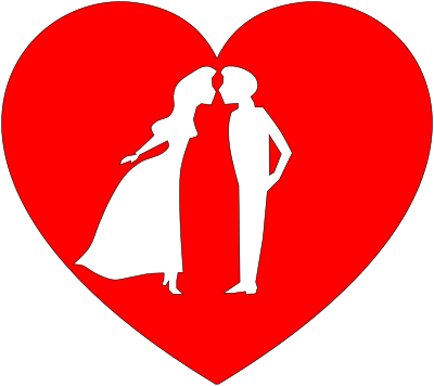 Heart (valentine) with couple leaning in for a kiss.