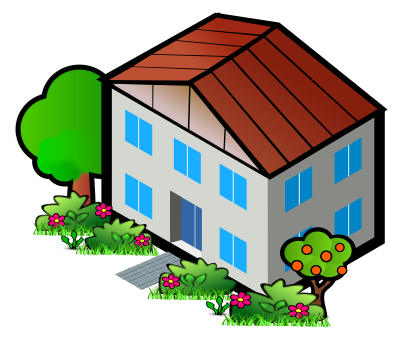 Uses iso city house by RG1024, plus isometric_floor_tile by RG1024, RPG Town Hall (roof) by Nicubunu, and various trees and grasses from OCAL.