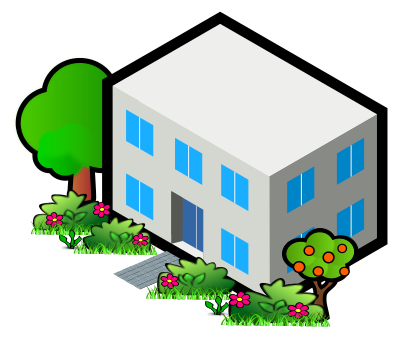 Uses iso city house by RG1024, plus isometric_floor_tile by RG1024, RPG Town Hall (roof) and RPG plants by Nicubunu, and various trees and grasses from OCAL.