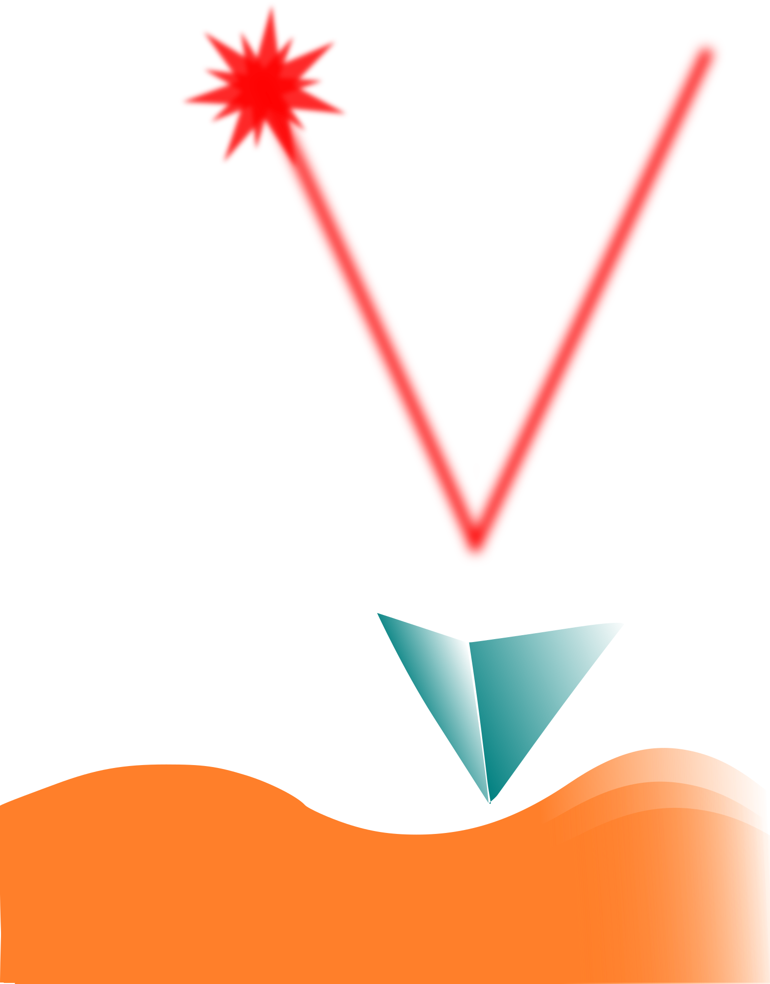 simple diagram of an atomic force microscope probe on a surface. shows the laser in a bit more grainer way.