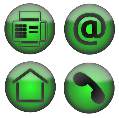 A set of four icons for use on a contact page. Easily recoloured by changing a single radial gradient fill on each.