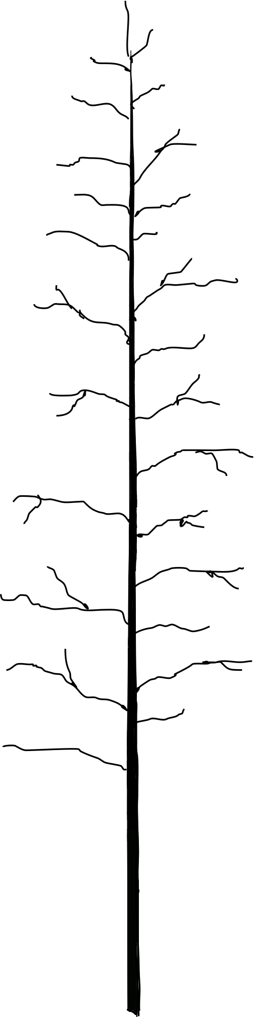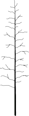 The silhouette of a tree without leaves.
