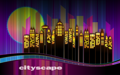 skyline of a city at night