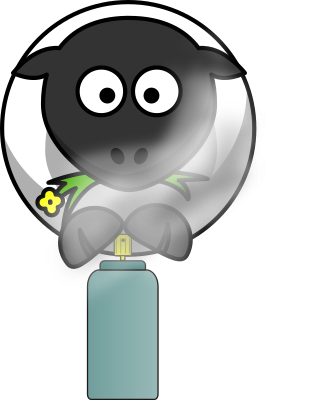 Sheep using a spray can