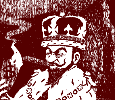 When you're rich, money looses it's meaning. This king is rich enough to use dollars to light his cigars. Though no dollar-countries have kings. So I guess he must have sent out for dollars in order to light up his cigars. An odd thing to do. Not sure why but I decided to do this one in dark red and white instead of black and white.