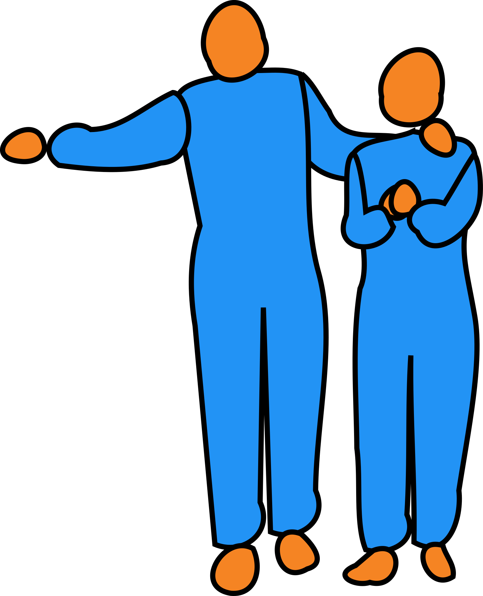 Male figure with arm on shoulder of female figure, pointing "encouragingly"