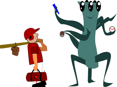 Alien fan getting autographs. Lots of elements that could be broken out into separate files (baseball, bat, player, etc.).
