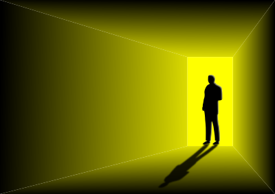 Man standing at the door, with shadow.