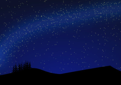 Nightscape with land and sky, simple drawing. Cosmic