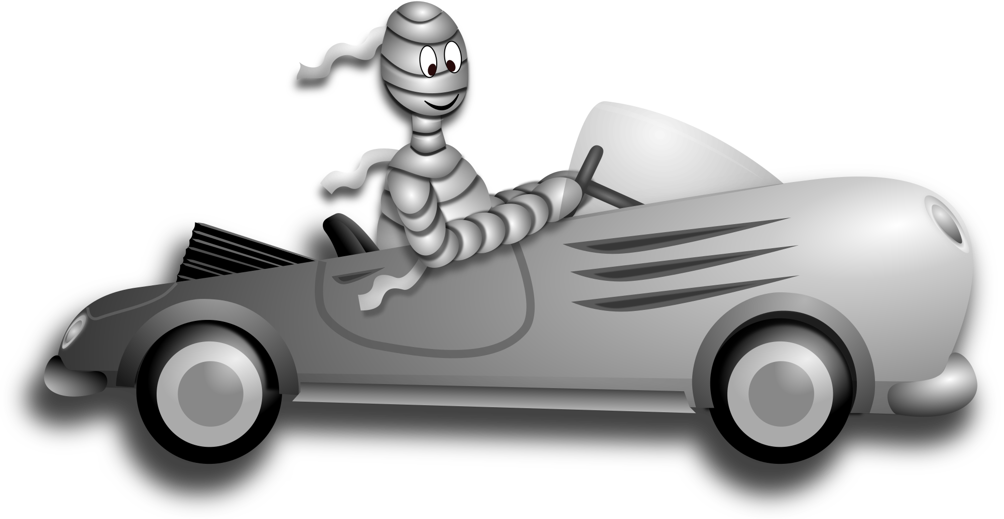 Little Mummy Driver in a Classic White Sport Car. Drawn with Inkscape.