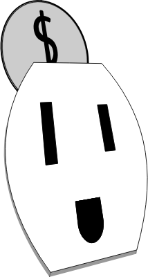 A happy US style electrical outlet receiving a coin from the top.