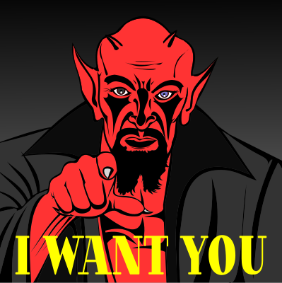 A pointing devil inspirated by the classic "Uncle Sam" picture. Drawn from the cover of an Italian book.