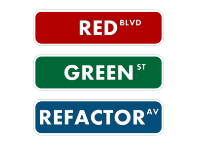 A red-green-refactor street sign