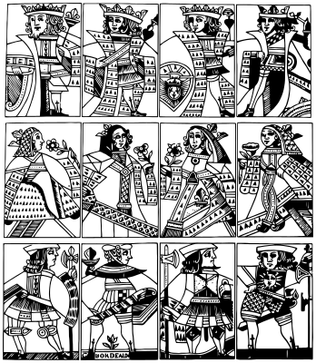 the figures from the Guyenne deck of cards. it was published in Bordeaux in 1746.