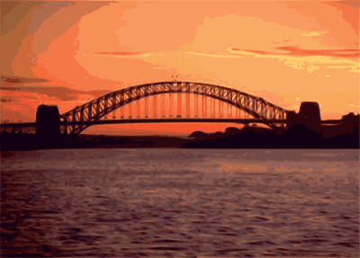 A vectorized bridge at sunset