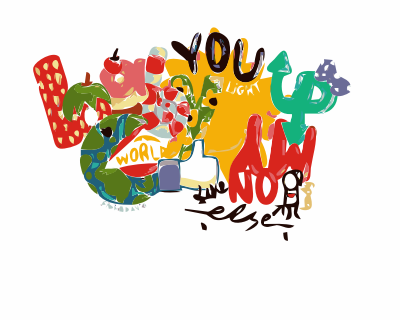 collage of text and party images in a colorful arrangement.