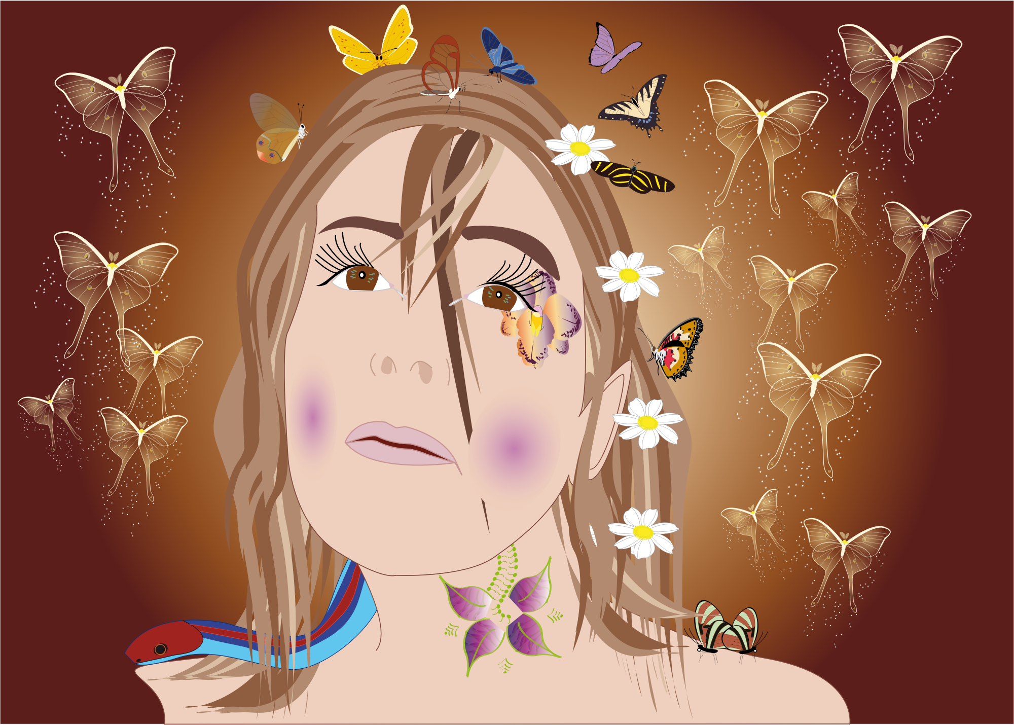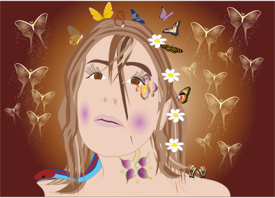 Fairy butterflies around a face.