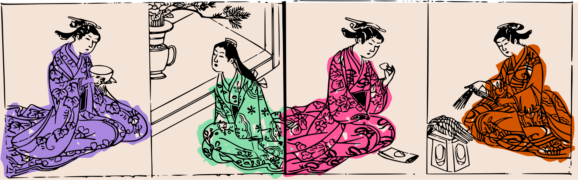 Four Kimono Ladies - colour