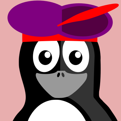 Penguin in a purple and red hat with pink background