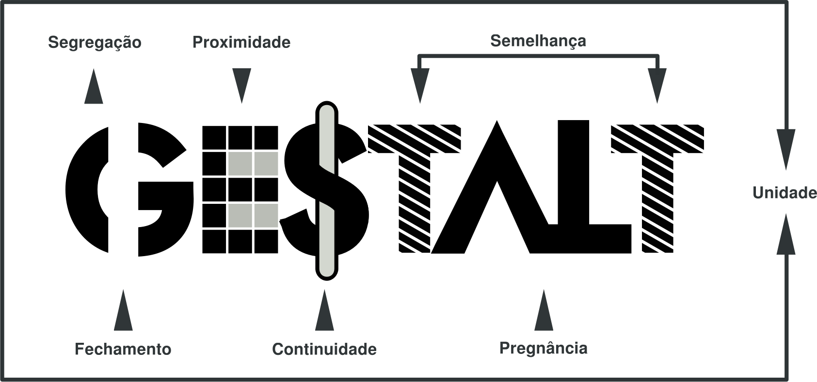 UNIFICAÇÃO: Esta se relaciona com o pensamento pré-Gestáltico, que via nas associações o processo fundamental da percepção da forma. A associação aqui, sim, é imprescindÃvel, pois certas formas só podem ser compreendidas se já a conhecermos, ou se tivermos consciência prévia de sua existência. Da mesma forma, a experiência passada favorece a compreensão metonÃmica: se já tivermos visto a forma inteira de um elemento, ao visualizarmos somente uma parte dele reproduziremos esta forma inteira na memória.