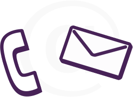 Clean flat contact graphic showing stylised '70s era telephone reciever and a simple stylised envelope overlapping an @ symbol.