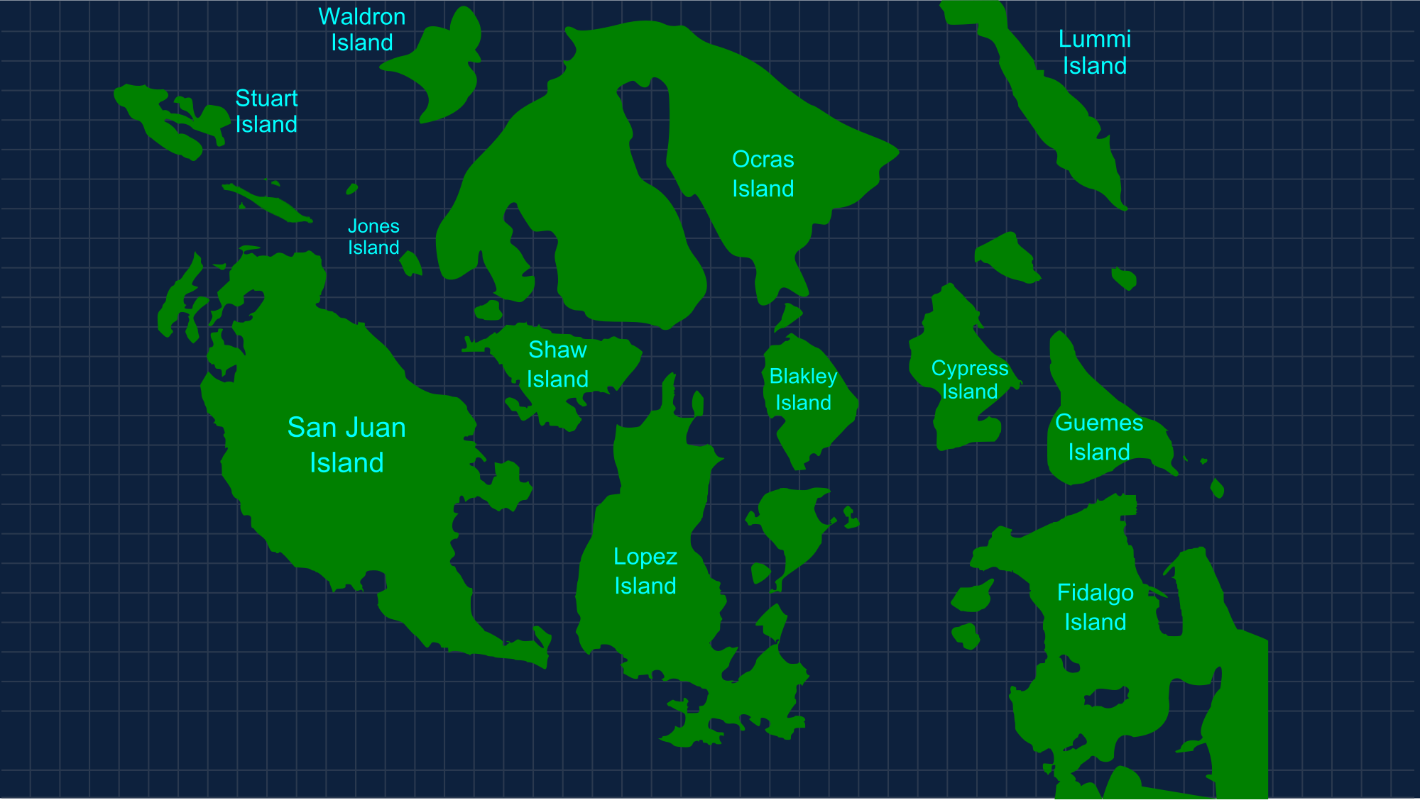 This is a drawing of the San Juan Islands in Washington State near Seattle.