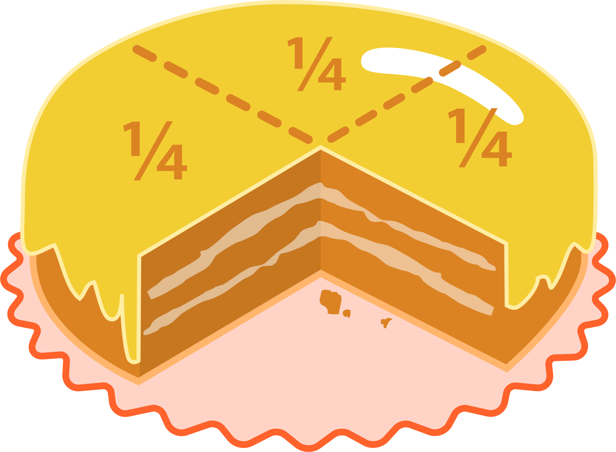 - cake cartoon cream cut dessert fourth icing maths portion quarter quartered yellow math one fourth
