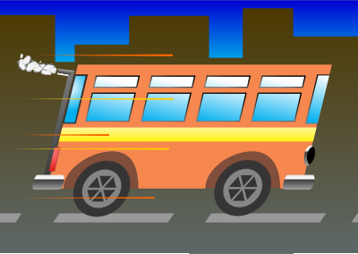 A bus taking kids to the school, early morning.