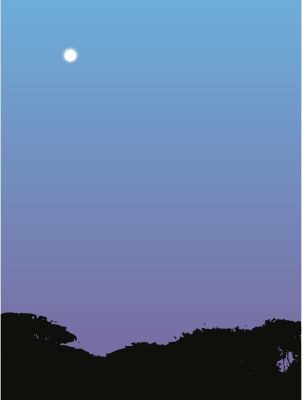 Sunset with moon and trees.