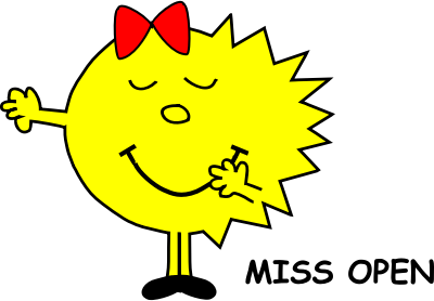Opencaching mascot Miss Open inspired by Roger Hargreaves Mr.man characters