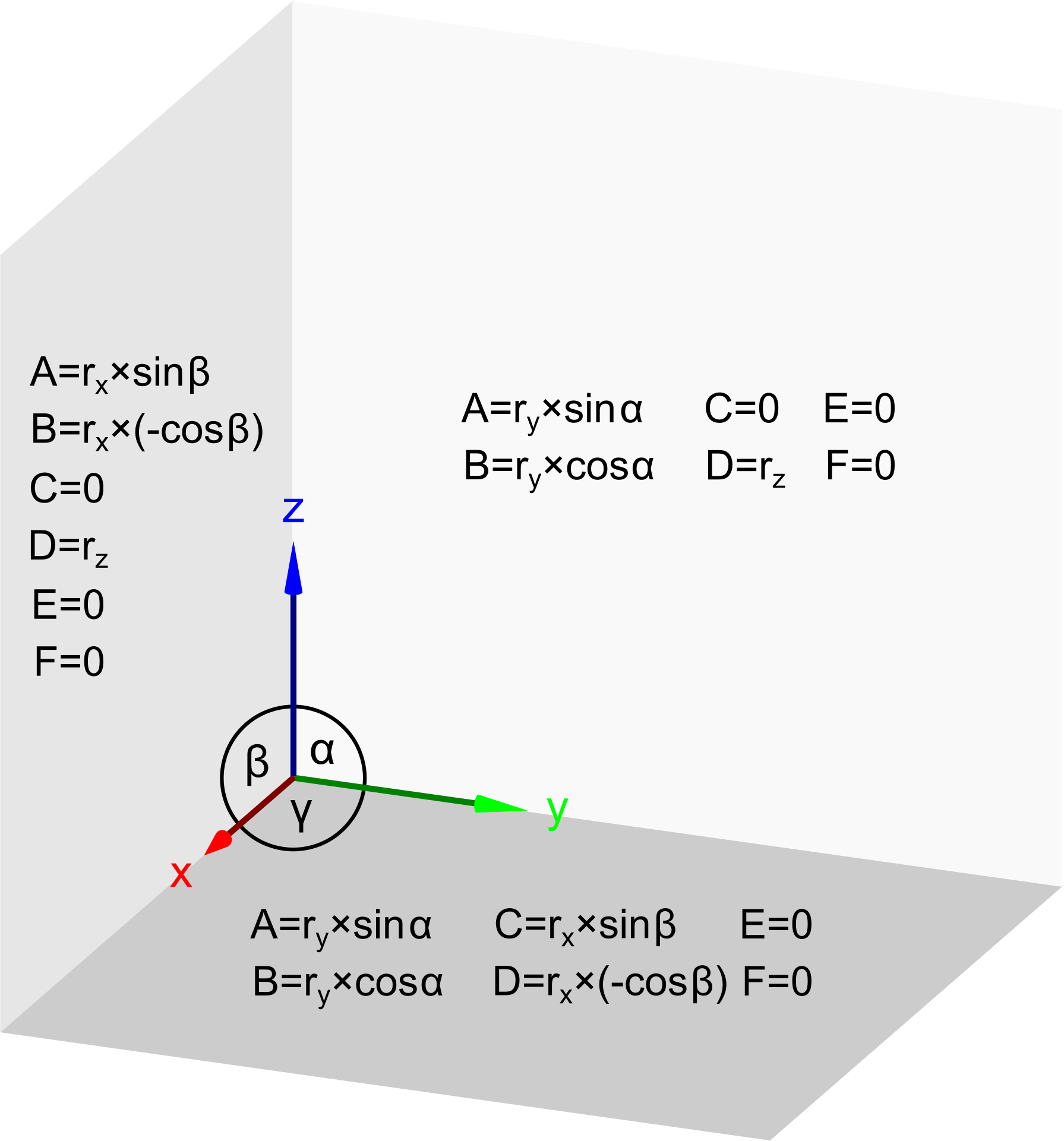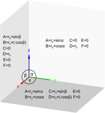 transformation matrix values for dimetry xy, xz, yz planes
